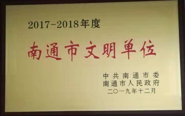 此前,公司已獲頒中共南通市委、南通市人民政府授予的“2017-2018年度南通市文明單位”銅牌。