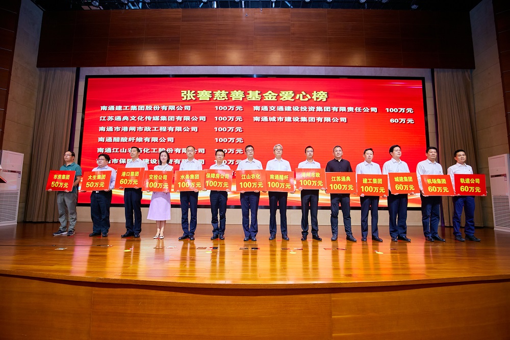 9月7日,由中共南通市委、南通市人民政府主辦的南通市“慈善之城”建設啟動儀式暨第三屆“南通慈善獎”先進典型表揚會在市行政中心舉行,我公司董事長張武榮獲評第三屆“南通慈善獎”最具愛心捐贈個人。同時,市慈善總會設立的“張謇慈善基金”揭牌捐贈儀式上,我公司代表上臺舉牌捐贈100萬元。
